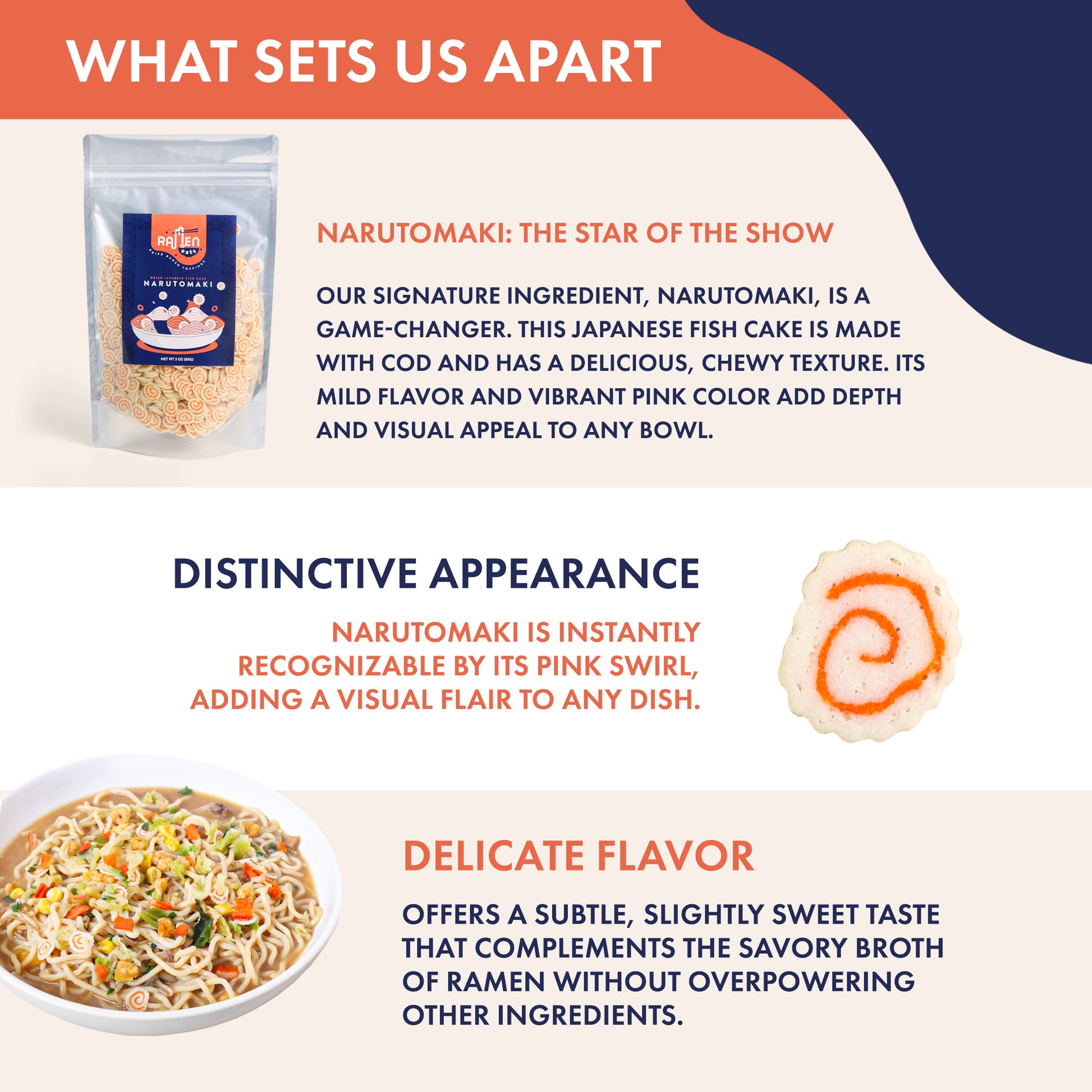 - Cultural Significance: A traditional component in Japanese cuisine, Narutomaki adds an authentic touch to ramen bowls.
